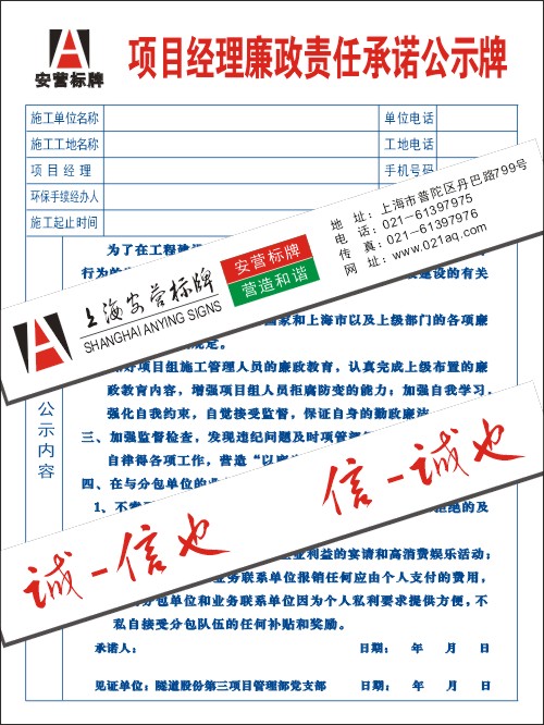 项目经理廉政责任承诺公示牌